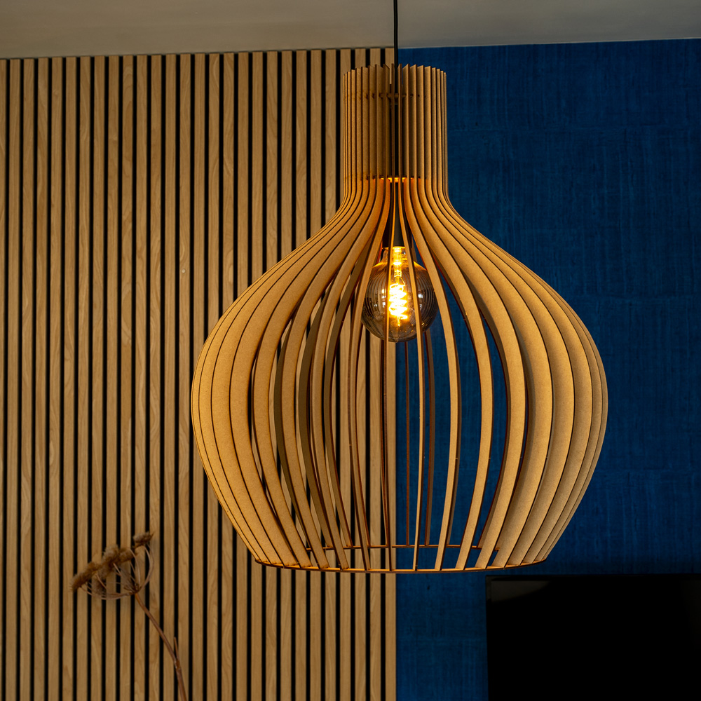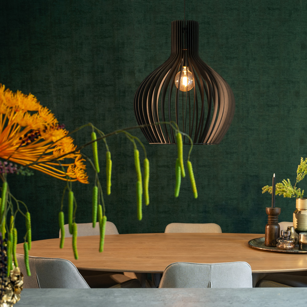 Maak een statement met de CIRA houten hanglamp. Met 58 cm doorsnee en natuurlijke uitstraling dé eyecatcher boven je eettafel.