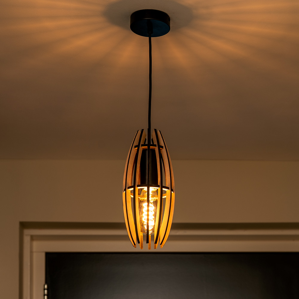 De INTI hanglamp is een elegante houten designlamp met minimalistisch karakter. Ideaal voor boven keuken, bar of hal.