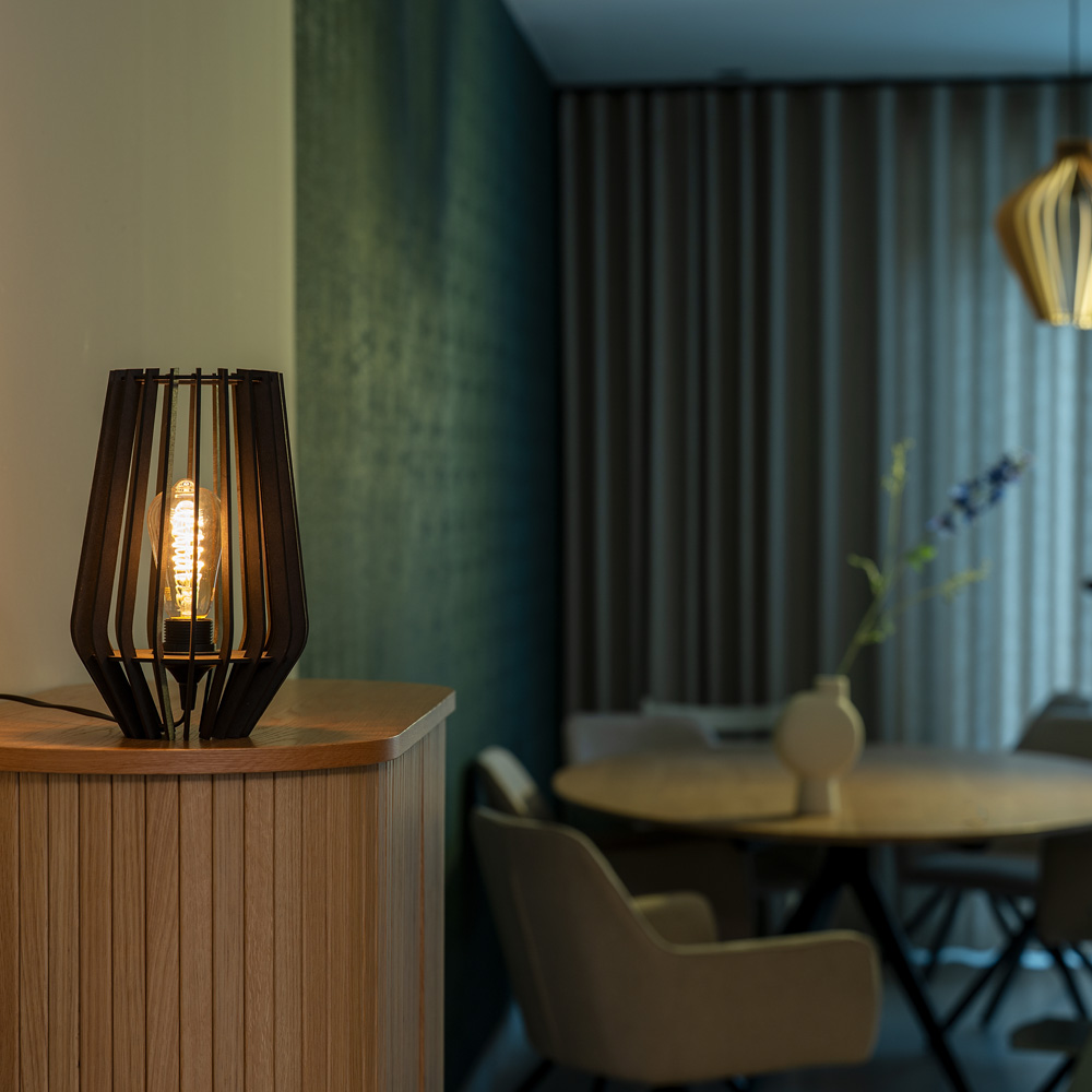 Ontdek de PUNTA houten tafellamp. Met zijn natuurlijke uitstraling en dimbare fitting is deze lamp perfect voor elke interieurstijl.